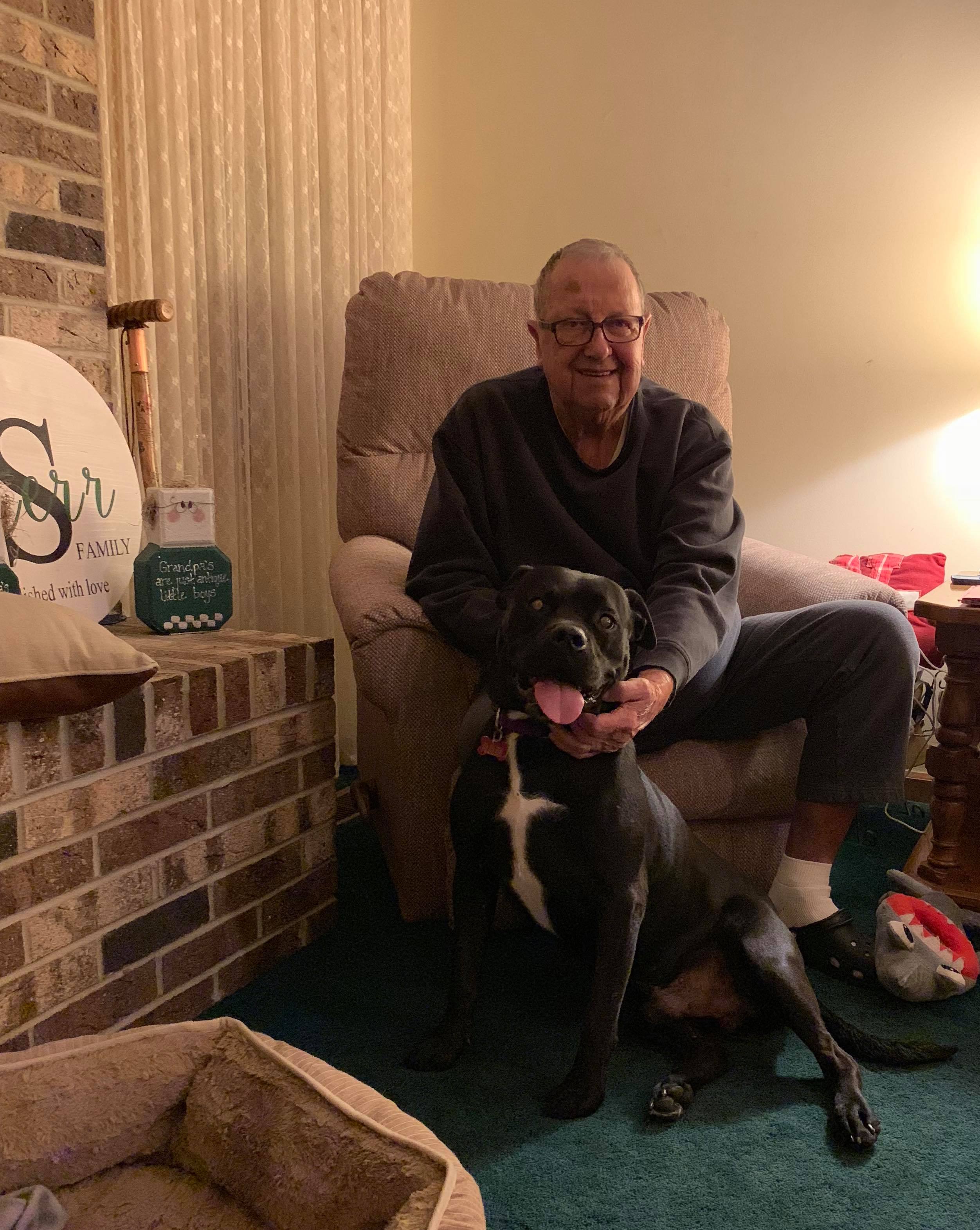 Fortino has a family complete with his number one fan, his Grand Dad. A yard to guard against those pesky birds trying to land on the feeder, a home where he romps up and down the stairs a hundred times a day. He has multiple beds around the home for comfort and convenience; with a set of bowls labeled “food” and “water”. His Dad asked if Fortino could read as he seems to always know which bowl is for what.