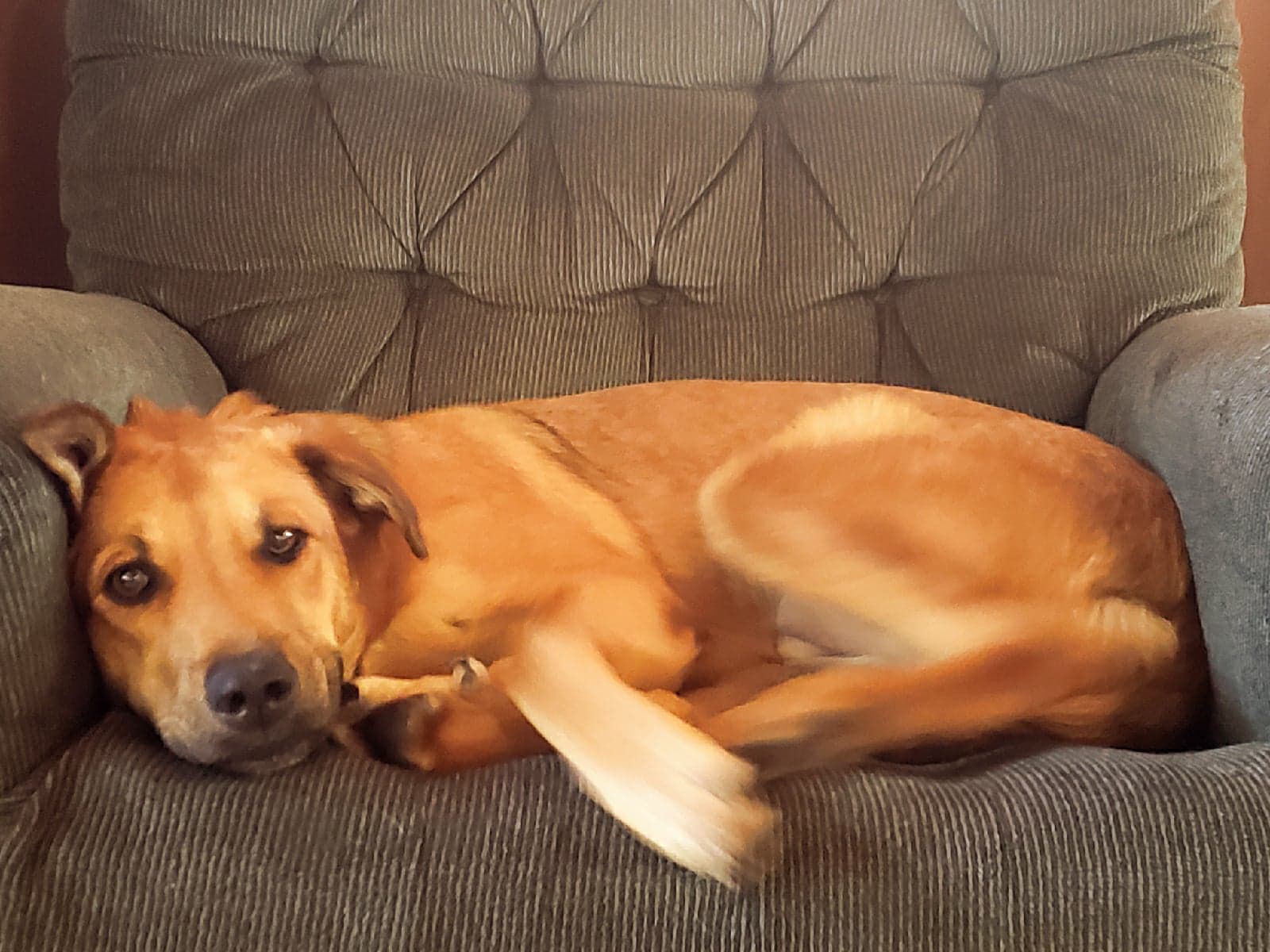 Marcus weighs 50lbs, he is a lean, fast, “let’s play outside” kinda dog.