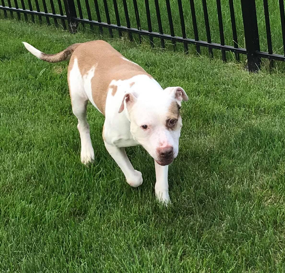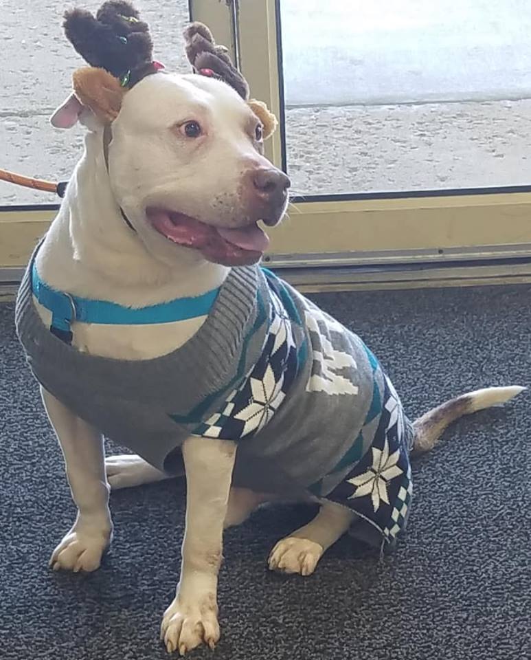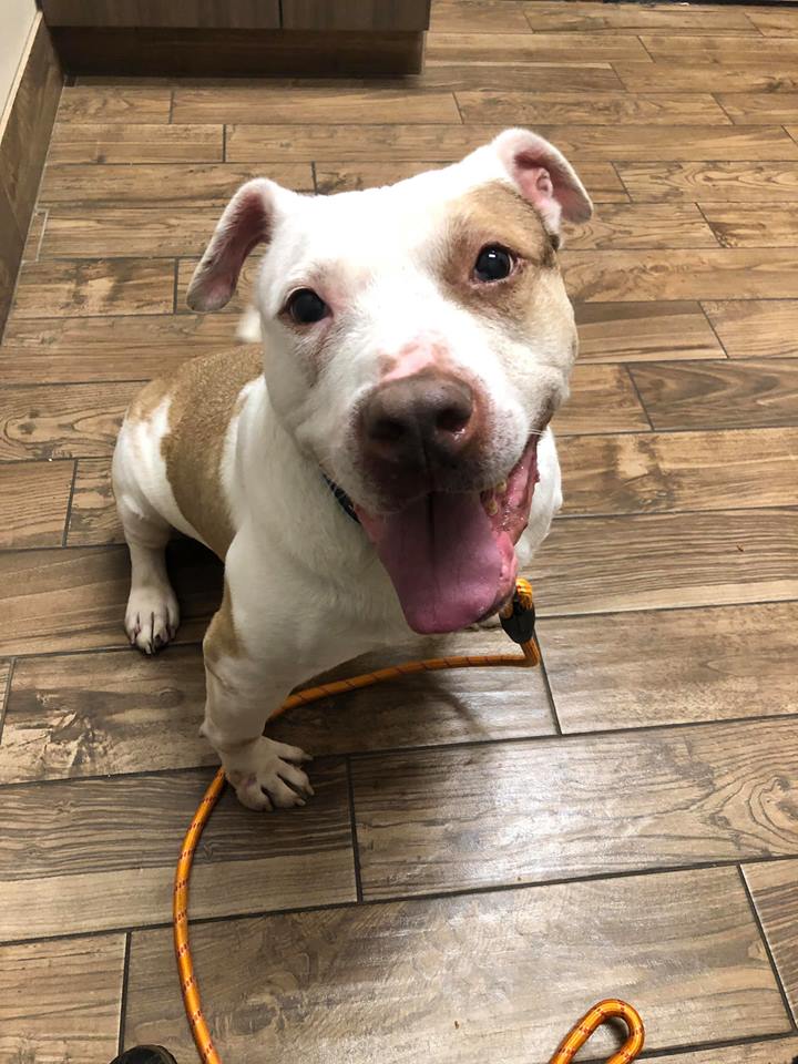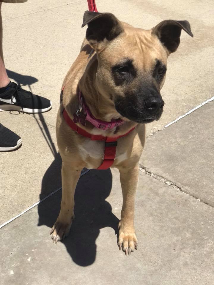 Marcus was adopted out at 4 months but returned by the time he turned 7 months by the family. He had a lot to overcome at that point and has put in the work. He is no longer the frightened puppy and is an outgoing fun loving dog.