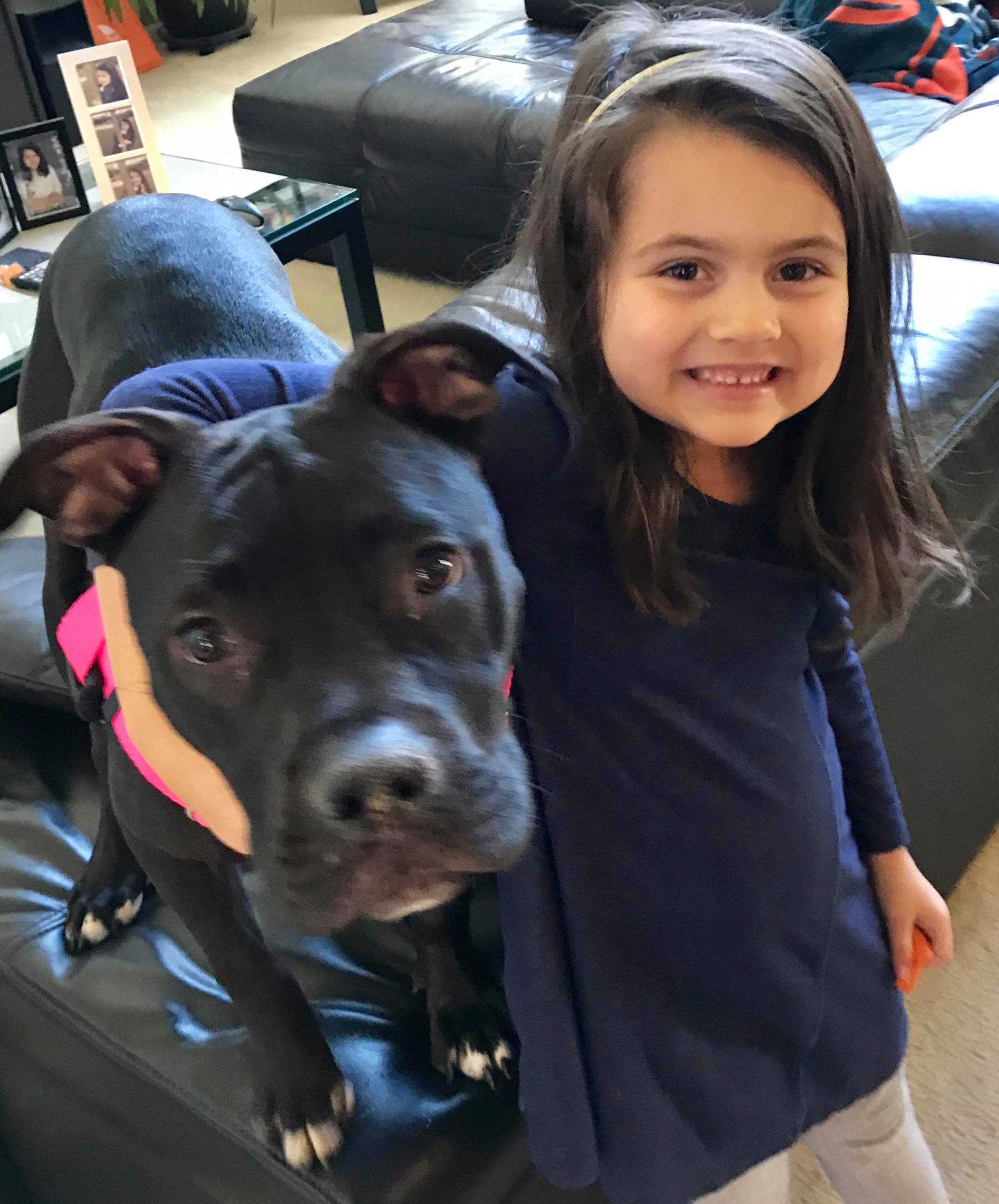 Livia can become nervous in new situations and they continue to work with her to overcome any fears that present themselves. Livia loves to cuddle with her foster Mom. She lives with a 5-year-old female child and performs her basic commands for the young trainer.