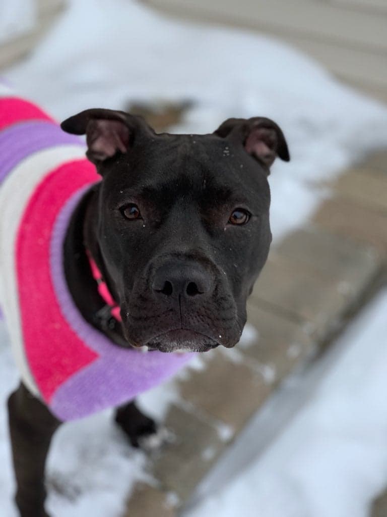 Maggie has been with us since December of 2017, she is a regal senior gal of the Black Mouth Cur breed.