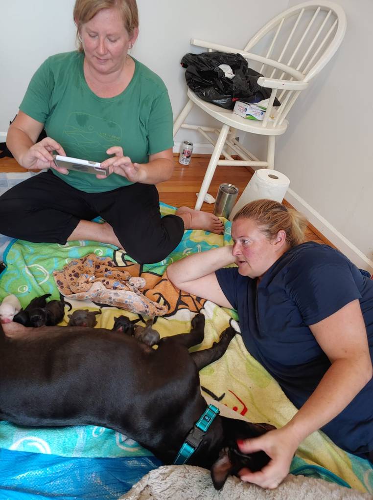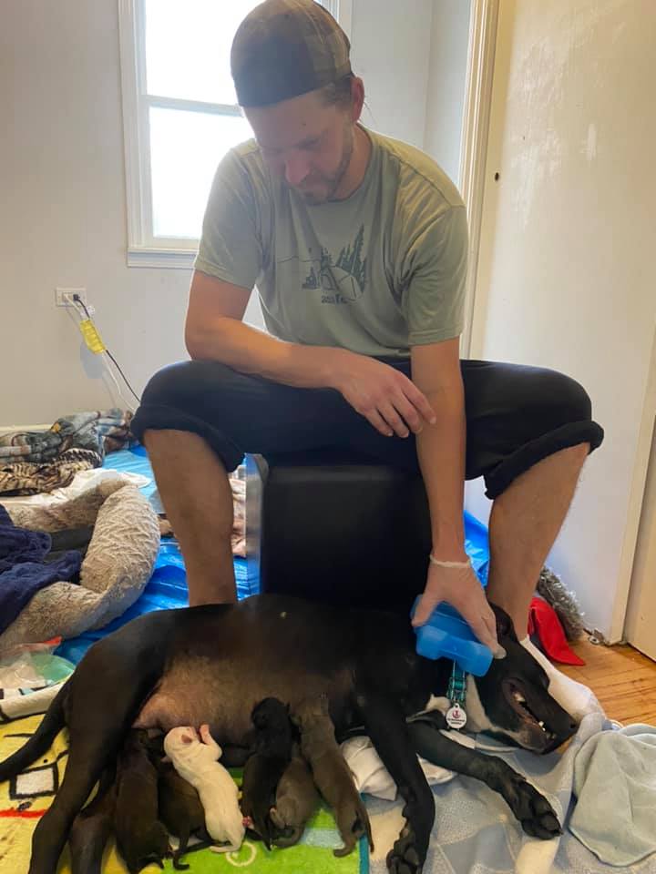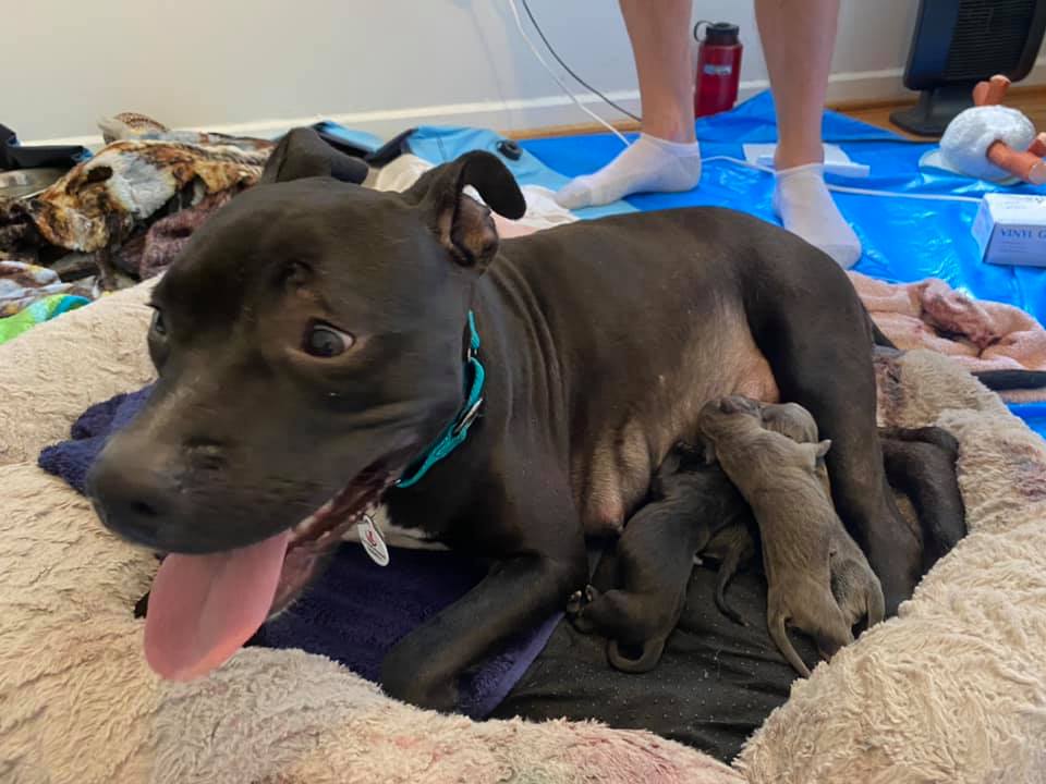Wasn’t long before she was giving birth and doing so like a pro. Her foster dad was enamored at how calm she was and the care she showed each new puppy. A few days went by and suddenly she was chuffing to the point it alarmed her foster dad.
