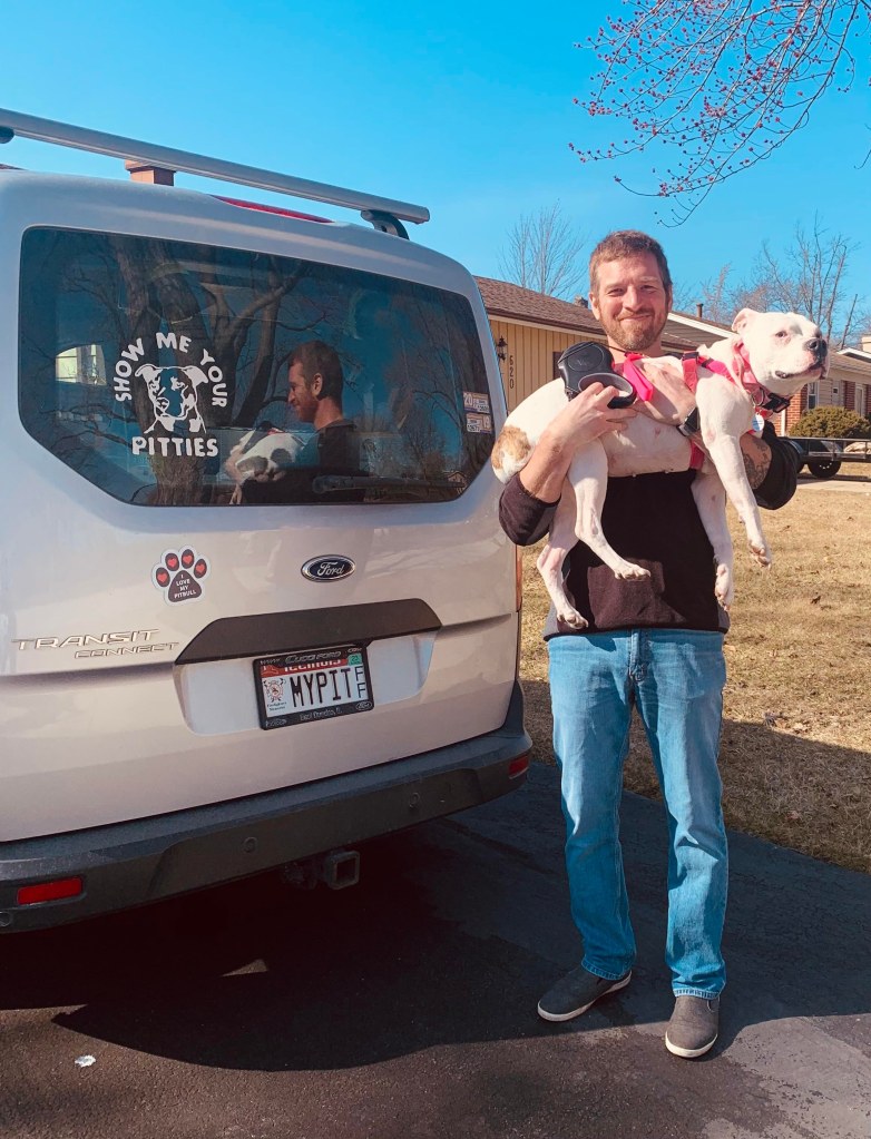 “I’ve always found Pitbull’s to be the sweetest of dogs, and Hope was no exception. She took some time warming up to us and our home, but watching her personality slowly come out was a joy to see. She wanted to be wherever we were and was my wife’s shadow most of the time. Sometimes she would divert from shadow duty and come say hi to me at my desk. Hearing her feet on the tile, I would turn to greet her before she came around the corner and she would light up to find me in my expected spot. If I was busy and didn’t turn to pet her she would sit down next to my chair and lick my elbow until I gave her my full attention. We shared a mutual hatred of cold weather and spent a lot of time in front of the fireplace, but if the sun was shining we would get outside for a lunchtime walk. After my wife’s knee surgery, it was just the two of us for a while. One day we were working our way around the edge of the park and I decided we should cut through the field to avoid the corner house with a particularly loud dog. We had walked through the field before, but on this day Hope lit up and started to excitedly bop around. She ran a few feet then plopped down, rolled over the lead, and looked at me. She loved rolling around in the grass. I ran up to her and rolled her back over, she then jumped up, ran another ten feet, and did it again. It was the first time I saw her let go of anxiety and be playful outside. It is my fondest memory of her.” Hope Love’s Dad, Todd