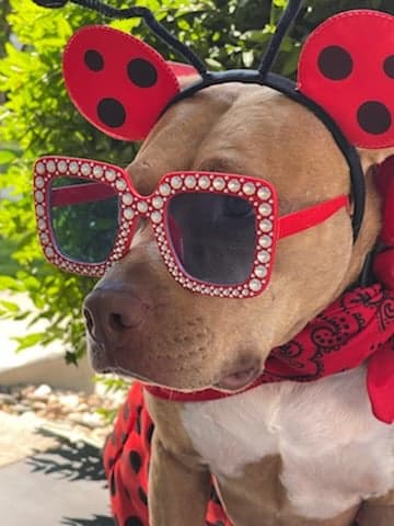 Then this past spring I received an email alerting me to Jessie’s vet appointment in Colorado. How odd, right, so I messaged her Mom. Apparently someone looked at the records and called me, not her. This gave us a chance to catch up. Jessie is a therapy dog! Jessie is living her best life! Jessie is her Mom’s loyal companion and best friend! Jessie has an extended wardrobe.