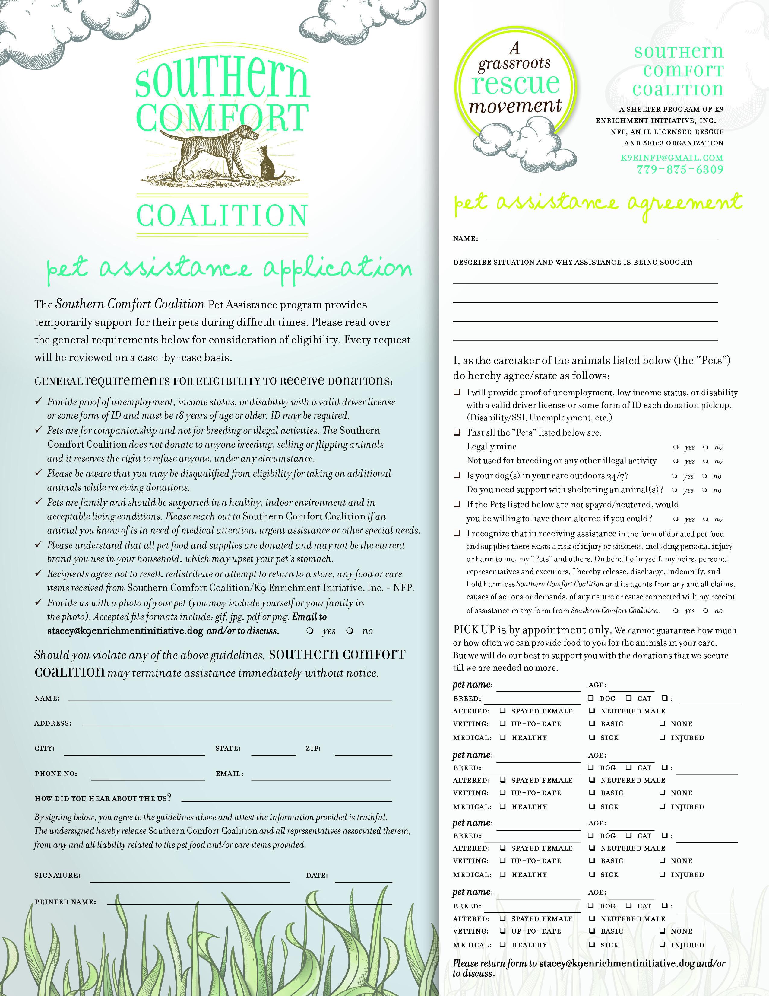 The Southern Comfort Coalition Pet Assistance program provides temporarily support for their pets during difficult times. Please read over the general requirements below for consideration of eligibility. Every request will be reviewed on a case-by-case basis.